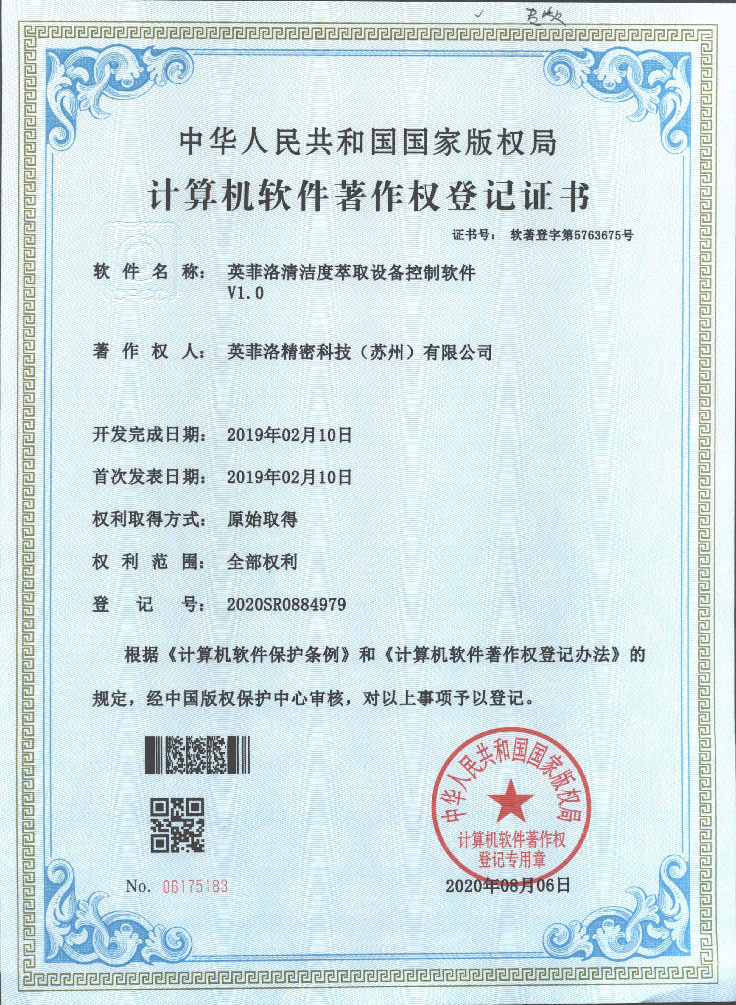 榮譽(yù)資質(zhì) > 英菲洛萃取設(shè)備控制軟件