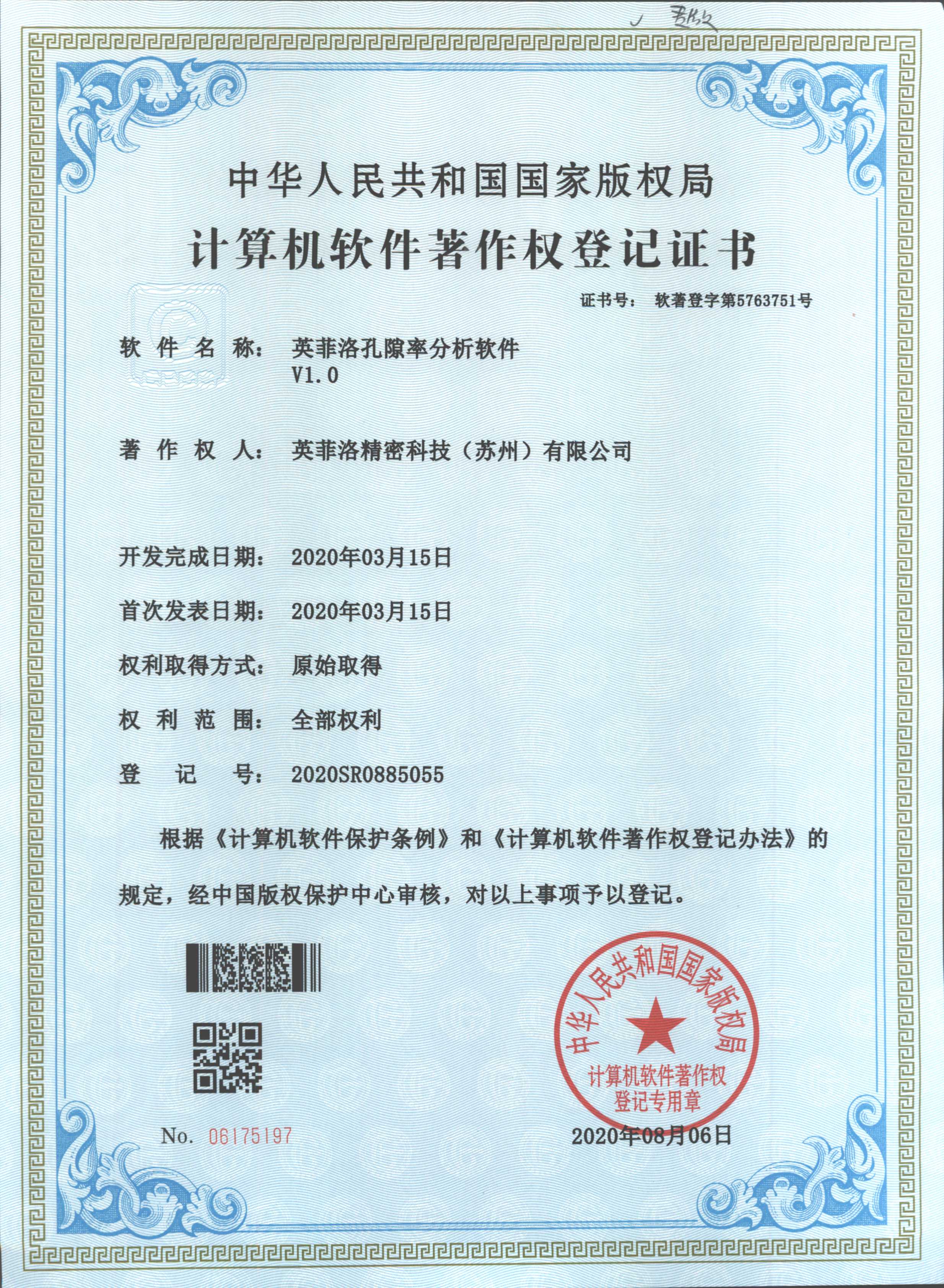 榮譽資質(zhì) > 英菲洛孔隙率分析軟件