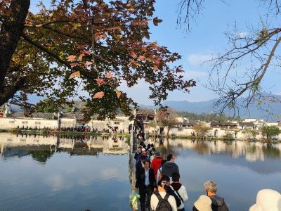 第—天去了黃山西南麓的宏村風景區(qū),它是一個皖南徽派古村落,以黃山山麓為背景,以水圳、月沼、南湖為主要水系的牛形村落。特受攝影、美術、建筑愛好者的喜愛。