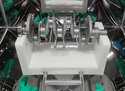 利用超聲波在液體中的空化作用、加速度作用以及直進(jìn)流作用對(duì)液體和污染物直接、間接的作用,使氣泡周圍產(chǎn)生1012-1013pa的壓力,破壞不溶性顆粒物附著性,使它們分化在液體中,蕞終實(shí)現(xiàn)零件清潔度污染物顆粒的清洗。